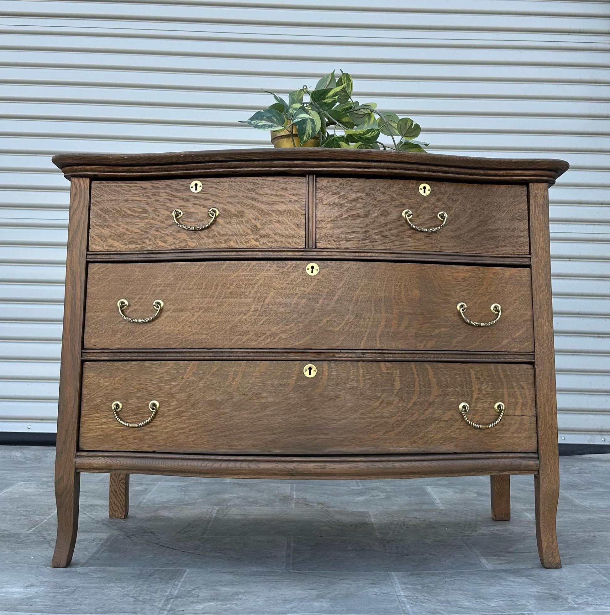 Beautiful tiger oak wood throughout. Featuring 4 drawers which are all lined in wallpaper.